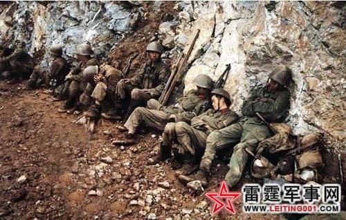 对越自卫反击战中方战士在战壕里休息