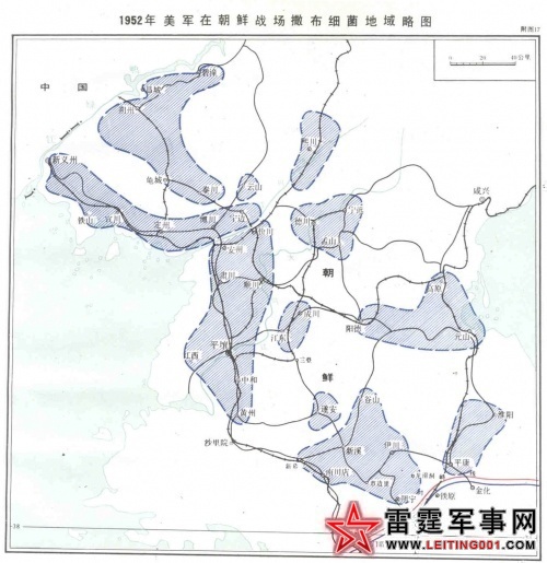 1952年美军在朝鲜战场散布细菌地域略图